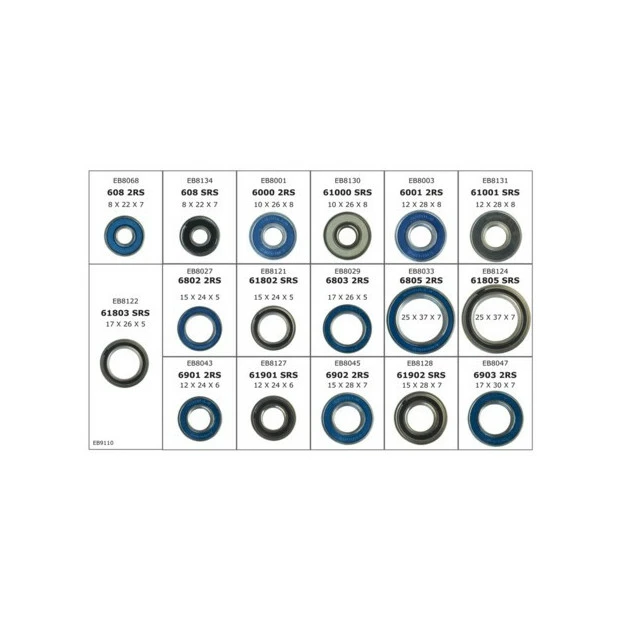 608 LLB (6) / 6000 LLB (4) / 6901 LLB (4) / 6001 LLB (6) / 6802 LLB (6) / 6902 LLB (6) / 6803 2RS (4) / 6903 LLB (2) / 6805 LLB (6) / 608 SRS (4) / 61000 SRS (2) / 61901 SRS (2) / 61001 SRS (4) / 61802 SRS (2) / 61902 SRS (4) / 61803 SRS (2) / 61805 SRS (4)Â