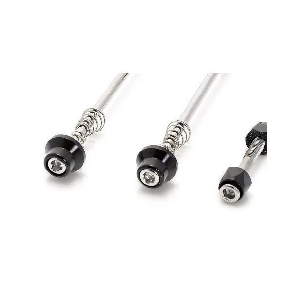 Ce kit de sĂ©curitĂ© est composĂ© d’aluminium et remplace le blocage rapide classique des roues et du collier tige de selle contre des axes Ă vis. Il Ă©vite ainsi le vol des roues et de la selle. Les axes Ă vis s’ouvrent et se ferment avec une vis allen.