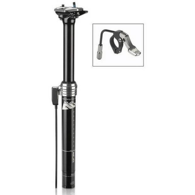 La tige de selle télescopique XLC SP-T10 a été conçue pour le VTT All Mountain. Le montant de la selle est chargé à l’aide d’une cartouche pneumatique dès que vous appuyez sur la gâchette basculante. Grâce à sa commande au guidon, vous pourrez la descendre et la baisser à votre guise.